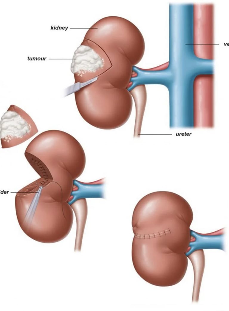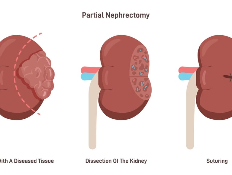 For patients with localized kidney tumors, Partial Nephrectomy (nephron-sparing surgery) is often the preferred treatment. Instead of removing the entire kidney, only the tumor and affected tissue are excised, preserving as much healthy kidney function as possible.